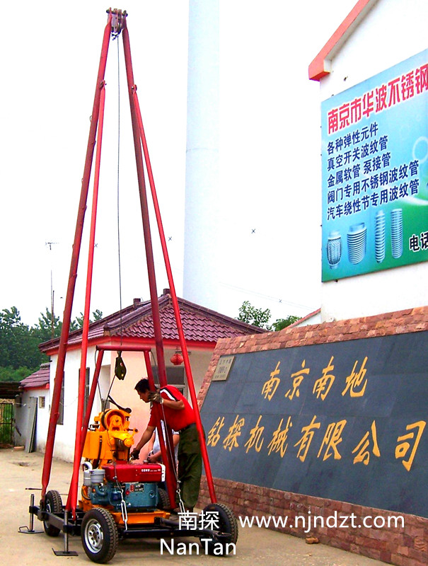特點:利用卷揚機可上下汽車、自起落塔、爬坡和移孔,是目前較為科學、經濟型鉆塔,拖掛移孔方便、安全平穩。