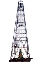 鉆塔由底座、臺(tái)板、塔身、天車、吊籠、導(dǎo)向輪,前、側(cè)場(chǎng)房,繩索取芯滑輪九部分組成。臺(tái)板由用戶自備(泥漿池房、場(chǎng)房塔衣、泥漿池房衣各部分根據(jù)需要單獨(dú)訂購(gòu))。