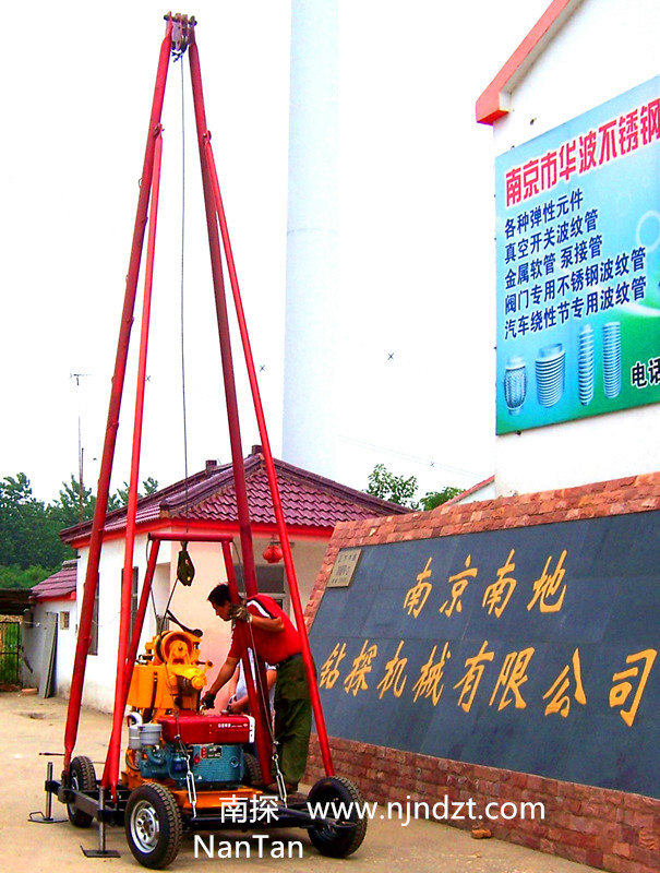 鉆機:可以選擇我公司XY-1-1、XY-1、XY-1A、XY-1A-4、XY-1A(移機)、XY-1A-5、XY-200(移機)等巖心勘探鉆機,選配T-SJ-3或T2-SJ-3型三腳架鉆塔、T4-SJ-4型四輪拖掛底座及四角架鉆塔、LP-4T-01/02型履帶底盤及鉆塔。