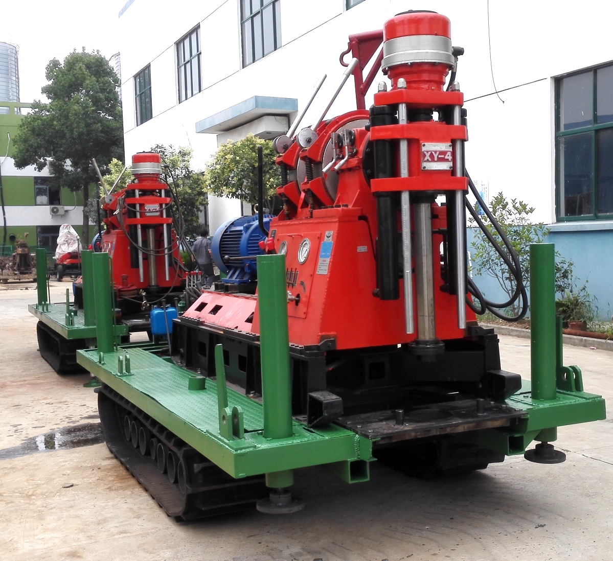 該總成裝有大型聯合收割機橡膠履帶行走機構和行走操縱系統,配套柴油機、鉆機橫梁、4組大液壓油缸調平衡支撐腿、工作平臺和鉆塔系統(2組主塔腿、2組付塔腿、起落塔裝置、雙滑輪天車、多組主付腿橫拉支撐)組成。該系列產品行走平穩,轉向靈活,采用幾型高架底盤,野外通過性能好。